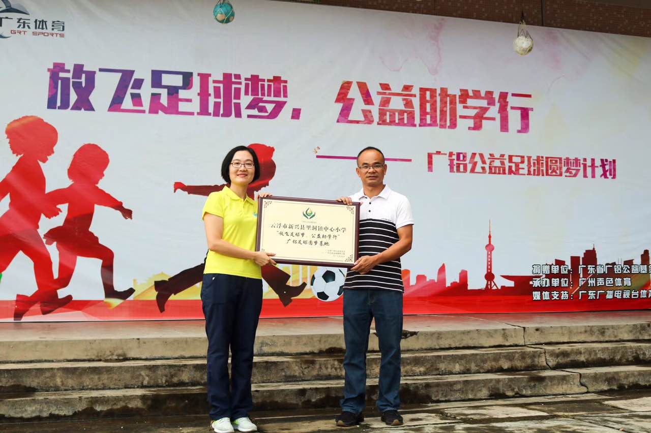 9月22日(周五)下午,廣鋁公益足球圓夢計劃首站來到了云浮新興縣里洞鎮中心小學,并在學校成立“廣鋁公益足球圓夢基地”。