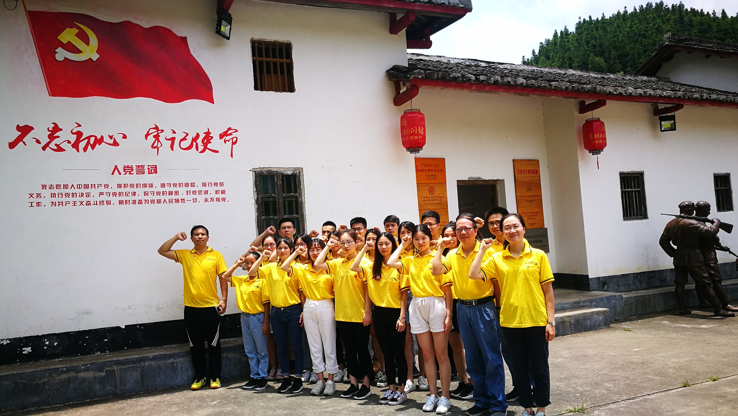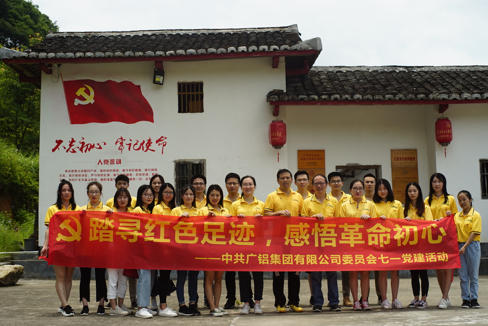 在黃沙坑革命舊址紀念館前,全體黨員在集團黨委書記夏明榮同志的帶領下重溫入黨誓詞,進一步強化黨員身份。