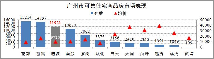 截至3月22日,廣州新建可售住宅商品房共有74084套,全市新建可售住宅商品房均價(jià)為14100元/平方米,環(huán)比回落3.5%。其中花都、番禺、增城及南沙的房源合計(jì)占比71%,增城共有可售房源11921套,均價(jià)為9723元/平方米,環(huán)比回落2.4%。相對于全國房地產(chǎn)市場表現(xiàn),統(tǒng)計(jì)期間廣州市房地產(chǎn)市場表現(xiàn)相對穩(wěn)定。