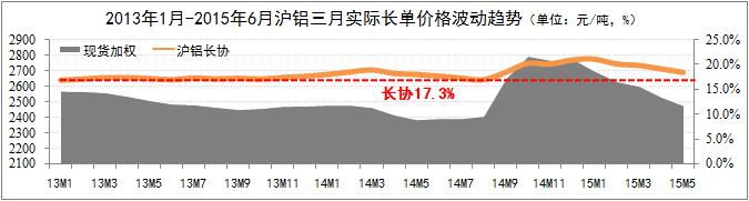 滬鋁三月長協比例回歸理性。自從2014年第三季度滬鋁三月長協比例飆升至20.3%以來,國產氧化鋁價格已實質偏離市場正常的發展軌道。數據顯示,從2014年10月開始,滬鋁三月長協比例出現不同程度的回落,目前長協比例已下調至18.5%,但仍然高于17.3%的基礎水平。綜合考慮生產原材料成本及經濟政策等因素,我們認為滬鋁三月長協比例將會穩定在18.0%-18.5%的彈性區間。