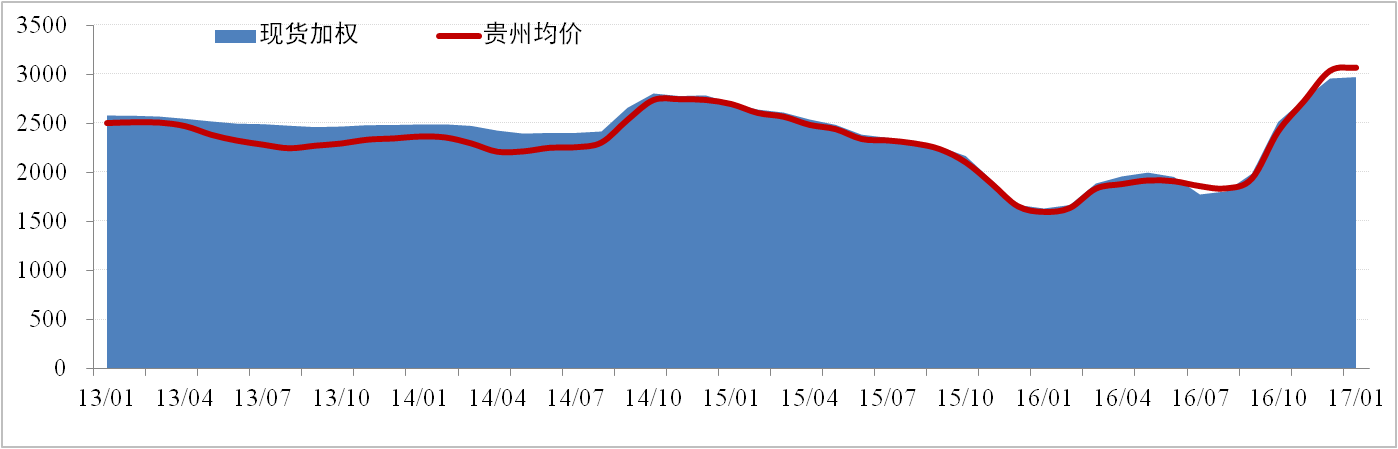 滬鋁三月比例價方面,2017年1月上期所三月期鋁結算價加權平均值為13,154.77元/噸,以17.6%作價2月份氧化鋁長單價為2,315元/噸,較1月份長單比例價上漲6.46元/噸。與現貨加權價格價差為654元/噸。1月份全國氧化鋁現貨加權價與滬鋁三月加權平均價實際折算比例為21.82%,較上月有所縮小。