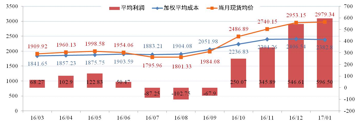 企業生產成本方面。2月鋁土礦價格走勢基本平穩,北方部分主流礦石價格小幅下降;煤炭價格穩中有降;燒堿價格相對堅挺。截止到2月末的山西地區成本區間2150-2450元/噸;河南地區成本區間2300-2500元元/噸;山東地區成本區間2350-2500元/噸;廣西地區成本區間2000-2250元/噸,全行業加權成本預計在2320元左右,而北方的加權成本預計在2360元左右。以截止到2月末的成交平均價格2920元來計算,氧化鋁全行業實現盈利。