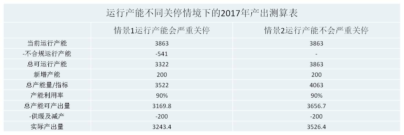 分析認為:通過嚴控新產(chǎn)能與環(huán)保政策驅(qū)動,結(jié)合目前產(chǎn)量2017年我國實際電解鋁產(chǎn)量在3243.4-3526.4萬噸,因此電解鋁供給缺口 [170,-110]萬噸。