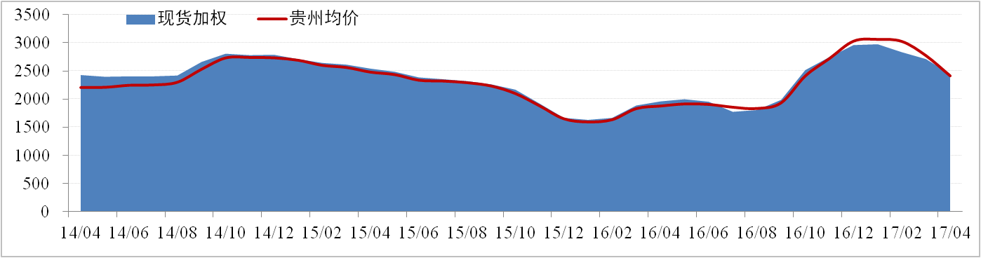 全國現(xiàn)貨價(jià)格方面,5月18日全國氧化鋁現(xiàn)貨加權(quán)價(jià)為2,286元/噸,較月初環(huán)比下降4.67%。貴州氧化鋁現(xiàn)貨加權(quán)價(jià)為2,260元/噸,較月初環(huán)比下降4.67% 。4月份北方價(jià)格快速下滑致使西南地區(qū)庫存壓力加快,5月西南地區(qū)氧化鋁現(xiàn)貨成交價(jià)格領(lǐng)跌與全國現(xiàn)貨價(jià)格。