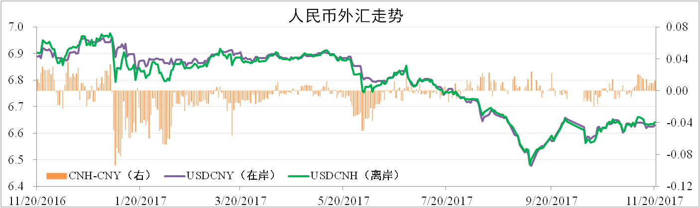 分析認(rèn)為:經(jīng)濟(jì)多頭主導(dǎo)疊加銀根收緊使得人民幣資金利率明顯上升,帶動(dòng)人民幣走強(qiáng)。而美聯(lián)儲(chǔ)收緊貨幣以及特朗普稅改預(yù)期將對美元有所提振,因此短期內(nèi)人民幣將延續(xù)震蕩走勢,風(fēng)險(xiǎn)在于特朗普稅改是否順利。