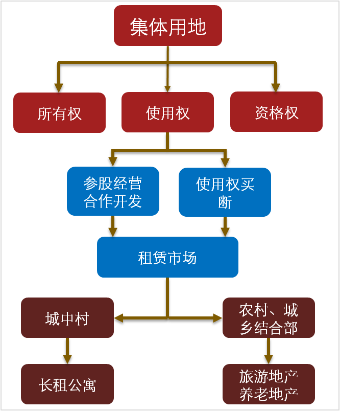 1月15日國土資源部部長姜大明表示我國將研究制定權(quán)屬不變、符合規(guī)劃條件下,非房地產(chǎn)企業(yè)依法取得使用權(quán)的土地作為住宅用地的辦法,深化利用農(nóng)村集體經(jīng)營性建設(shè)租賃住房試點(diǎn)。由于所有權(quán)未放開,因此政策主要目標(biāo)在于租賃住房的供給。