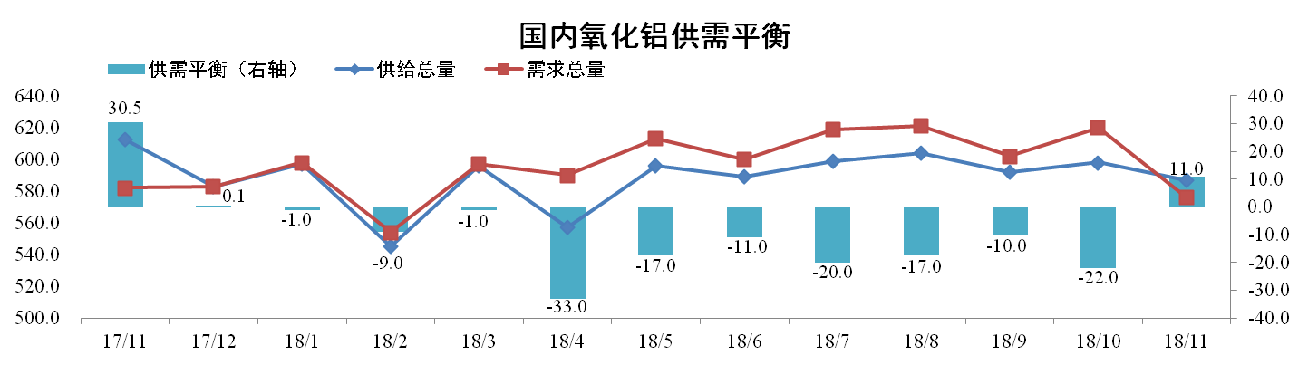 分析認為:11月河南地區多個氧化鋁企業受采暖季影響進行限產,加之礦石價格居高不下,氧化鋁供給總量稍有下降。12月利潤驅使,會導致氧化鋁產量有所增加,而下游電解鋁企業需求疲軟,預計供給過剩。