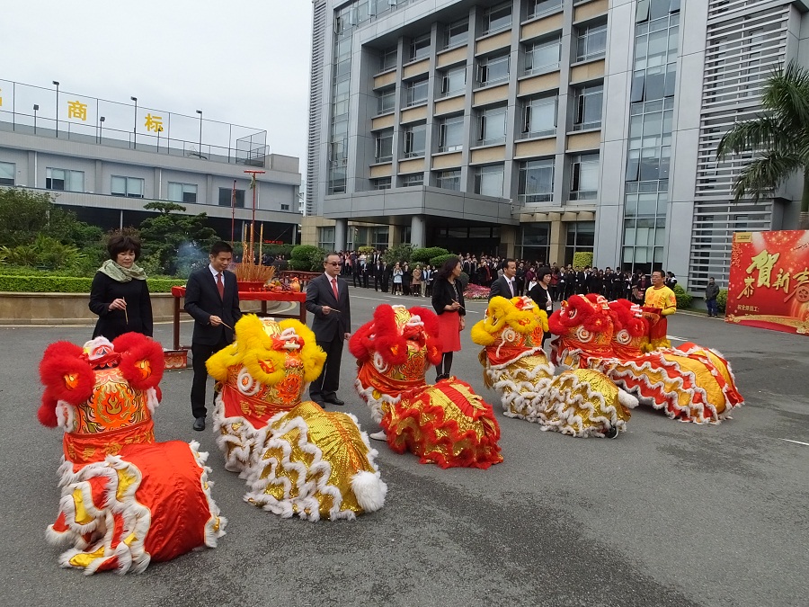 上午9:30時,鑼鼓鞭炮聲聲響,雄獅共舞賀新春,在響徹云霄的炮竹聲、鑼鼓聲中廣鋁集團新春開工慶典正式拉開帷幕。首先由葉董事長帶領各位干部員工祈福;緊隨而來的是雄獅賀春,紅火的儀式將喜慶歡樂的心情帶給每一位員工。綿延不絕的的鞭炮聲、清脆響亮的鑼鼓聲、歡天喜地的祝賀聲……此景此情,更是預示著廣鋁集團在新的一年里,將更加紅紅火火,多元業務齊頭并進,共創效益。