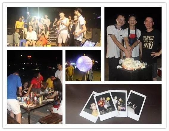 大家不僅在沙灘玩起了瘋狂的團建游戲,而且還辦起了燒烤派對。啤酒、串串,還有生日蛋糕,9月份生日的寶貝們一起慶生,大家在沙灘邊拿著燈籠賞月,浪漫又激情。
