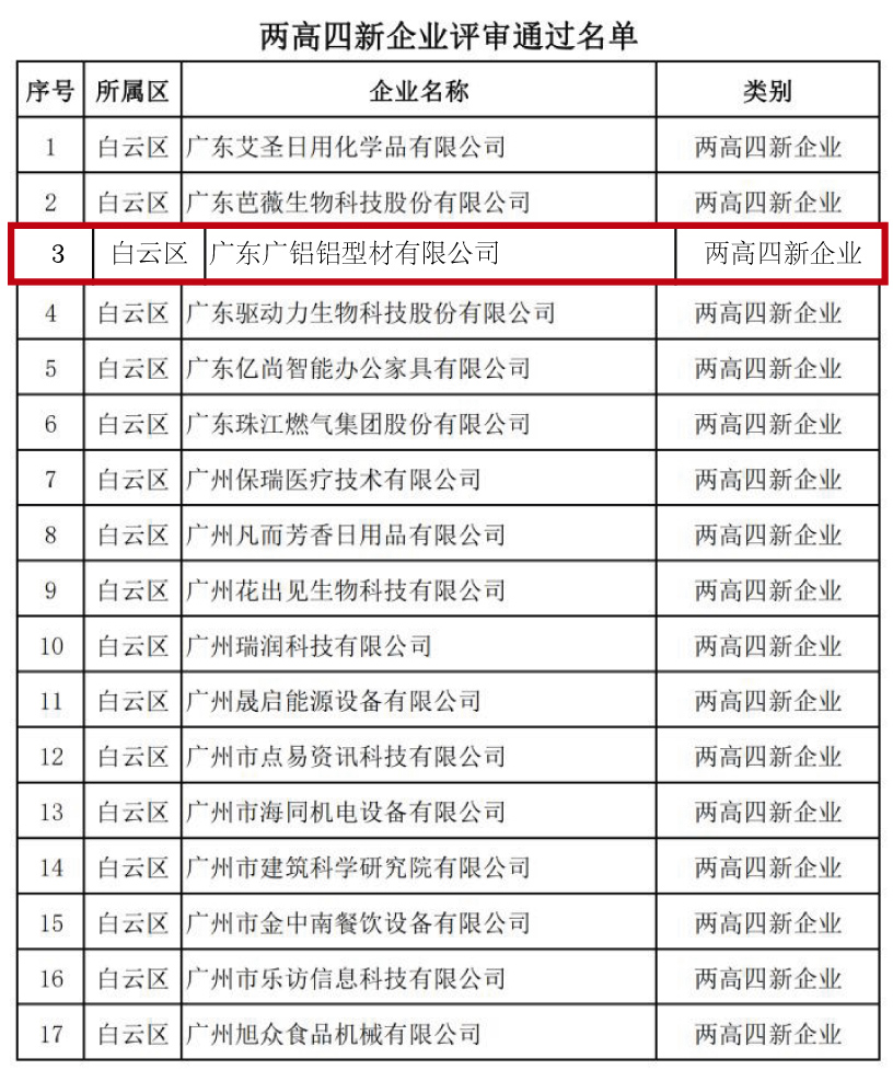 熱烈慶祝!廣鋁入庫廣州市工信委“三個一批”企業