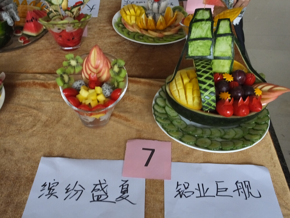 下午三點,比賽在總部一樓大廳正式開始。在主持人的一聲令下,參賽選手挑選自己需要的材料后立即投入到比賽之中。盡管不是專業的廚師,但選手們依然充滿熱情,展現出自己心靈手巧和別出心裁的一面。選手們在享受比賽的樂趣之余也不忘伸出友誼之手,面對對手交換水果、請求幫助的要求,他們同樣慷慨相助。比賽中,參賽選手完美配合,將團隊協作發揮到淋漓盡致,一個多小時后,一盤盤色香味俱全的水果拼盤紛紛出爐。最終,企管事業部鄧雯雯和譚鴻玲奪得本次比賽冠軍,營銷服務處吳小燕和周素歡獲得二等獎,企管事業部周艷華和黃詩敏獲得三等獎,結算事業部江潔玲和周艷妃獲得最佳創意獎。