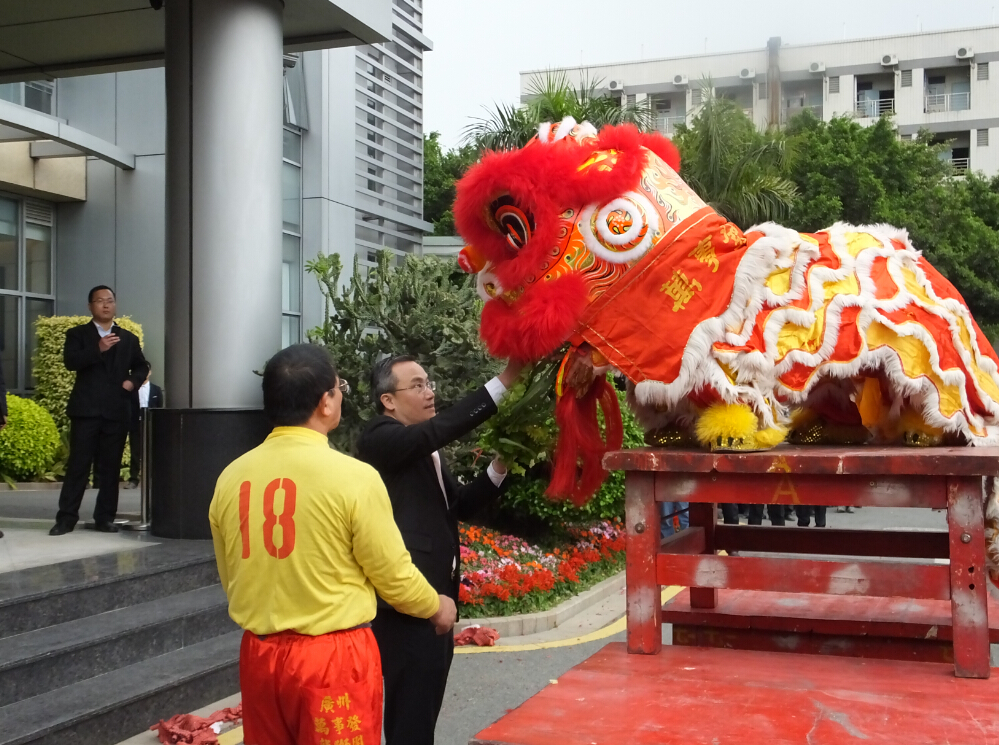 上午9∶30時,在一片熱鬧、喜慶的氣氛中,集團公司新春開工慶典隆重拉開帷幕。響徹云霄的炮竹聲、鑼鼓聲、歡笑聲和祝賀聲一步一步將慶典儀式推向高潮。鑼鼓鞭炮聲聲響,雄師共舞賀新春。醒獅儀式中,葉鵬智董事長、吳秋顏董事和夏文鋒總裁滿懷虔誠地進行了點睛儀式。在一片喜慶中,集團公司領導班子帶領全體員工參與了上香儀式,共同祈禱2014年風調雨順,蒸蒸日上。雄獅共舞再次把現(xiàn)場的氣氛推向了高潮,集團辦公大樓和江高生產基地處處歡騰起舞,共賀新春!